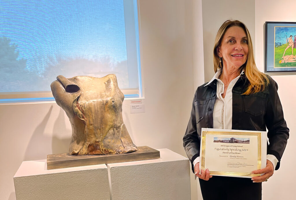 We’re thrilled to announce that Mandy Henson’s ceramic piece, Armour #1, has been recognized with an Award of Excellence at the Art League of Long Island’s juried “Figuratively Speaking” exhibition! This honor is a testament to Mandy’s dedication to exploring form and expression in ceramics. The juror, Professor Seung Lee, had the challenging task of selecting honorees from an outstanding selection of 60 works, and Mandy’s creation stood out among them.